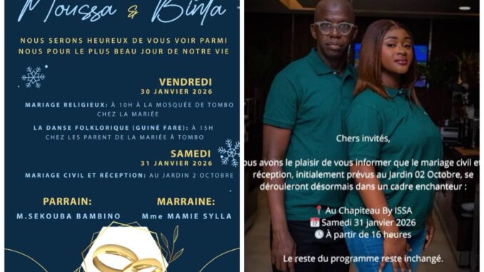 Heureux mariage à Moussa et Binta, et plein de succès dans cette belle aventure humaine !