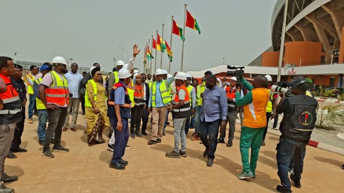 Après sa rencontre avec le mouvement sportif guinéen, le ministre de la Jeunesse et des Sports, Mamadou Cellou Baldé, a effectué une visite de terrain pour s’enquérir de l’état d’avancement des chantiers financés par le gouvernement guinéen, notamment le Stade Général Lansana Conté et le Stade du 28 Septembre.