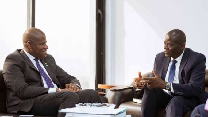 Conakry, le 19 février 2026 – Le Ministre du Plan, de la Coopération internationale et du Développement, Ismaël NABE, a reçu en audience M. Blaise AHOUANTCHEDE, Président-Directeur Général d’Afrik Finances Holding. M. AHOUANTCHEDE était accompagné de son Conseiller spécial, M. Philippe KPENOU.
