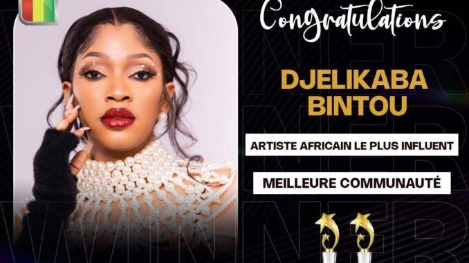 Djely Kaba Bintou Kouyaté, la célèbre chanteuse guinéenne à la voix envoûtante, continue de briller sur la scène musicale africaine. Elle a été une nouvelle fois honorée par les Benin Showbiz Awards, remportant deux prestigieux trophées : « Artiste la plus influente de l’Afrique francophone » et « Meilleure communauté (Le Patronat) ».